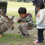 Nara is zowat de geboorteplaats van de Japanse beschaving. Men ging kijken in het nabije en toen veel meer geavanceerde China. Men kopieerde vlijtig: onderdelen uit het geschrift, de kunst, de bouwtechnieken en nog zoveel meer. De resultaten zijn vandaag nog steeds in Nara te zien en tekenen de hele Japanse cultuur tot vandaag. Je doolt rond in tempels, schrijnen en rond pagoda’s in de groene rand van het stadje waar de kersenbloesems normaal stilaan neerdwarrelen. Een prachtig zicht! Hele groepen Japanners zitten dan graag onder de vallende bloemblaadjes te picknicken, een teken van hernieuwd leven.